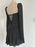 Mon Amour captures the spirit of timeless elegance with a contemporary twist. Crafted from a soft, flowing fabric adorned with classic white polka dots, this piece evokes effortless sophistication reminiscent of vintage Parisian style. The sweetheart neckline and delicate back lacing create a perfectly sculpted silhouette that flatters every curve, while the long puffed sleeves add a touch of romantic drama.