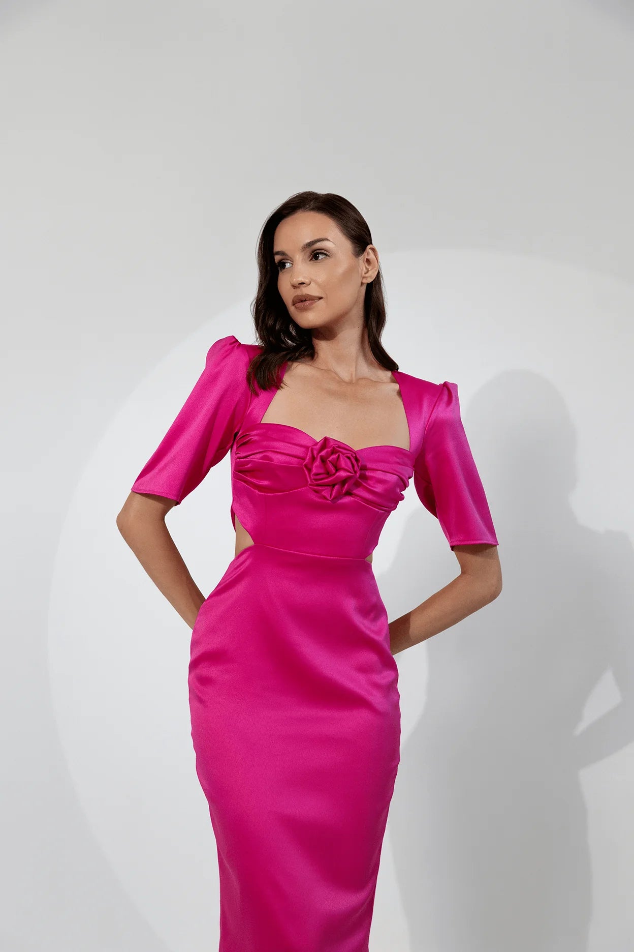 Elevate your evening wardrobe with the Cindy Dress from MiriMari's SS24 collection. This stunning satin dress is designed to make a bold statement with its exquisite detailing and luxurious fabric.